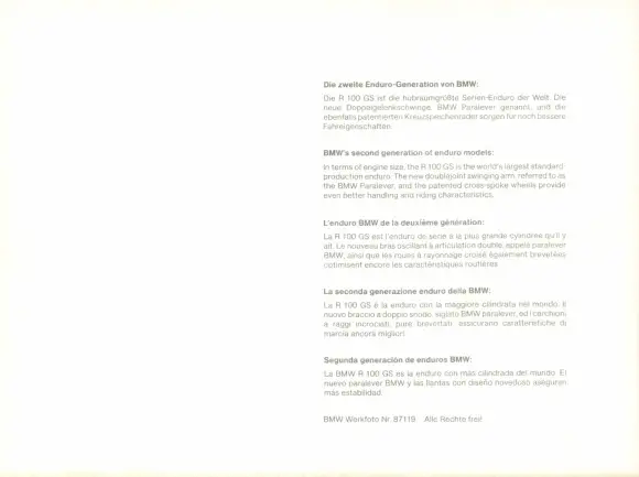 Foto Motorrad, BMW Enduro R 100 GS, Reklame