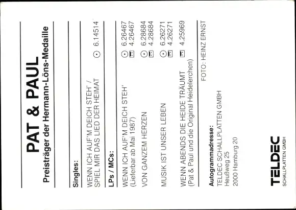 Foto Musikgruppe Pat und Paul, Portrait, Autogramm