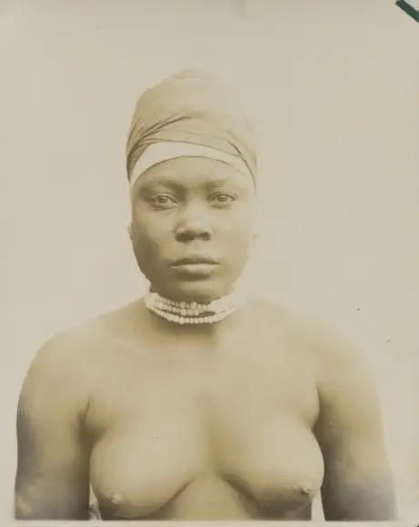 Foto Namibia, DSWA, Barbusige Afrikanerin, Kopftuch, Portrait