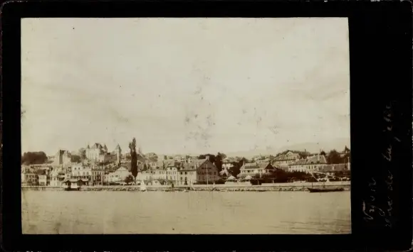 Foto Nyon Kt. Waadt Schweiz, Stadtansicht vom Wasser aus