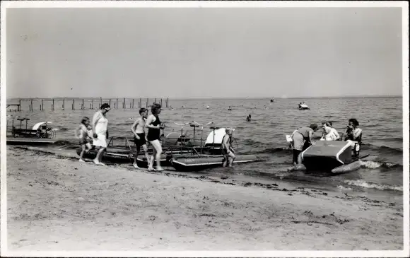 Foto Ostseebad Scharbeutz in Ostholstein, Strandleben, Partie am Strand, Tretboote