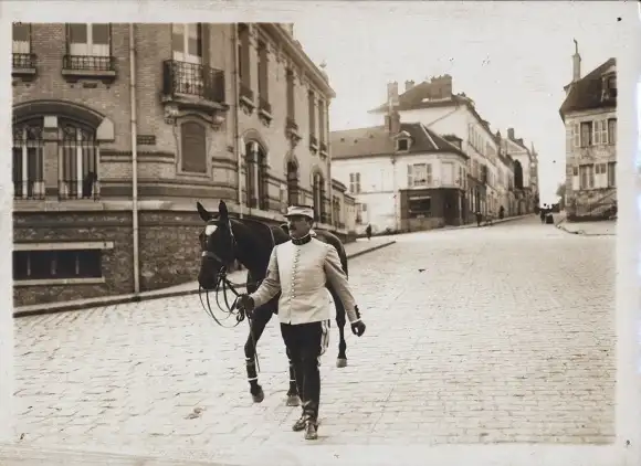 Foto Paris, Soldat mit Pferd zu Fuß