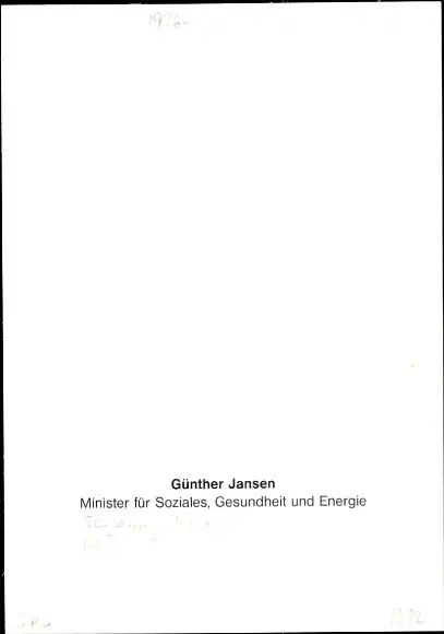 Foto Politiker Günther Jansen, Portrait, Sozialminister, Autogramm