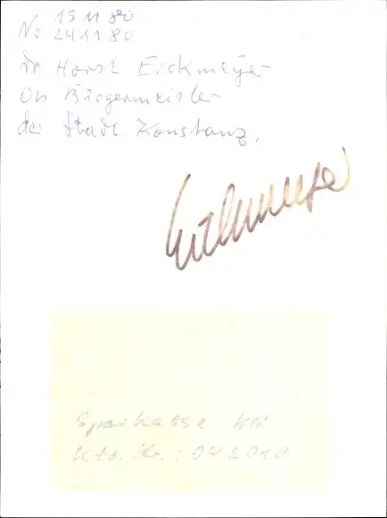 Foto Politiker Horst Eickmeyer, Oberbürgermeister der Stadt Konstanz, Portrait, Autogramm