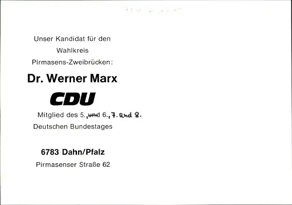 Foto Politiker Werner Marx, Portrait, Autogramm