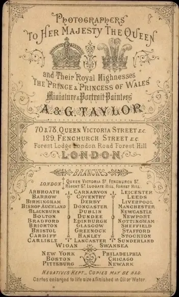 Zustand, siehe Scan, ungelaufen- Foto-Studio/-Atelier: A. und G. Taylor, London - ca 6 cm X 10 cm