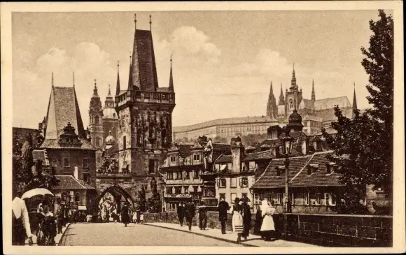 Foto Praha Prag Tschechien, Stadtpartie, Brücke, Kirchturm