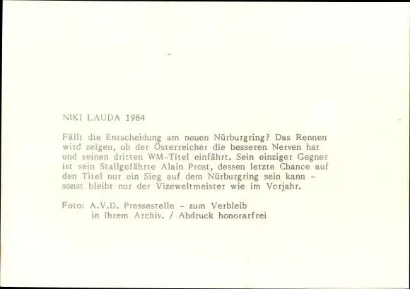 Foto Rennauto, Formel 1, Niki Lauda 1984, Nürburgring