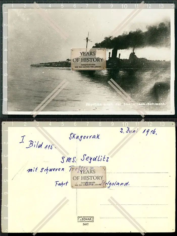 SMSFoto S.M.S. Seydlitz mit schweren Treffern bei Helgoland Kriegsschiff Kaiserliche Marine 1916 X2022-05-08-102Foto S.M.S. Seydlitz mit schweren Treffern bei Helgoland Kriegsschiff Kaiserliche Marine 1916