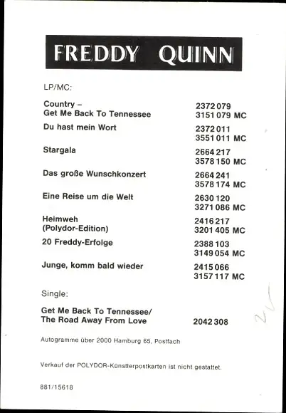 Foto Sänger Freddy Quinn, Autogramm