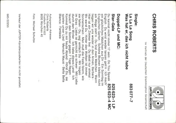 Foto Sänger und Schauspieler Chris Roberts, Autogramm