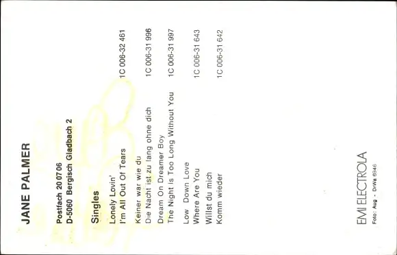 Foto Sängerin Jane Palmer, Portrait, Autogramm