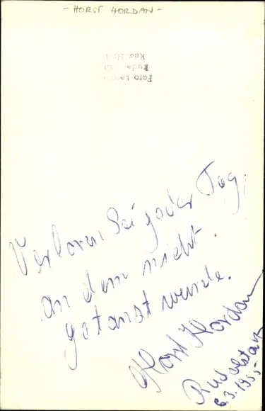 Foto Schauspieler? Horst Hordan, Portrait, Autogramm