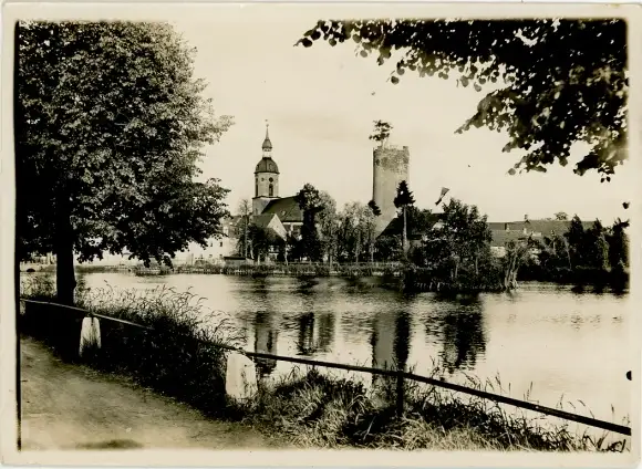 Foto Triptis in Thüringen, Schlossturm, Kirche, Teich