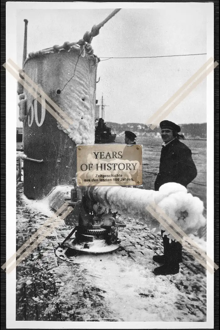 Foto Unterseeboot U-Boot U 30 mit Eis bedeckt im Hafen