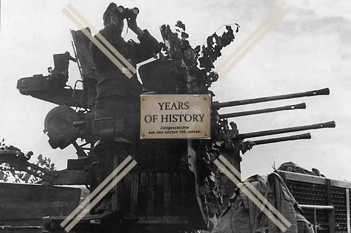 Foto Vierling Flak Soldat mit Fernrohr beobachtet X2022-05-31-755Foto Vierling Flak Soldat mit Fernrohr beobachtet