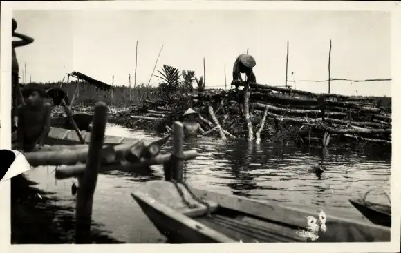 Foto Vietnam, Arbeiter stapeln Bäume, Boot