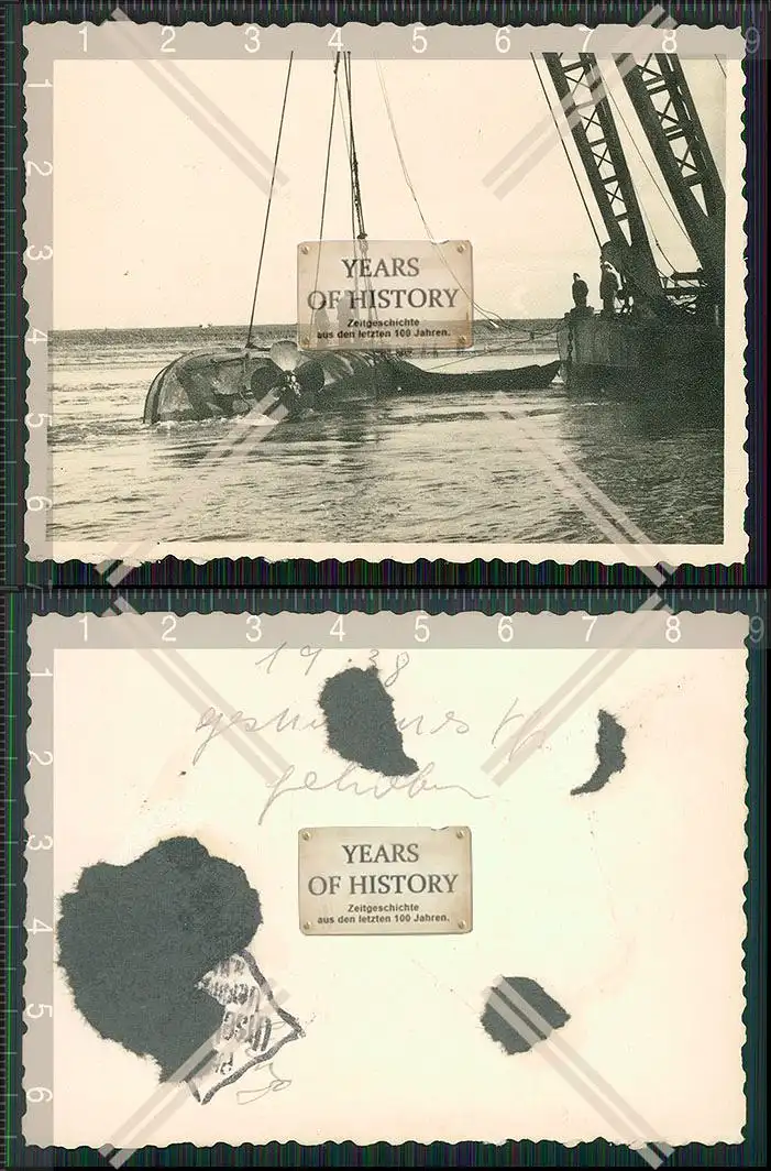Foto gesunkenes Boot U-Boot Unterseeboot wird mit Kran gehoben 1940