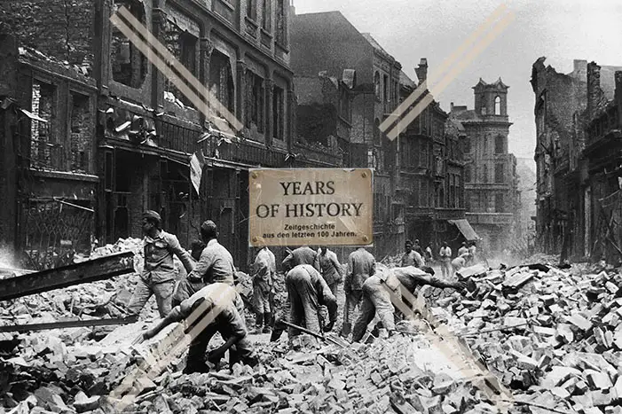 Foto zerstörte Stadt Trümmer Soldaten räumen auf