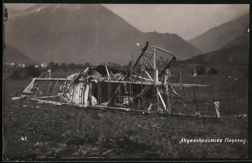 Fotografie 1.WK, Wrack eines abgeschossenen Flugzeug's