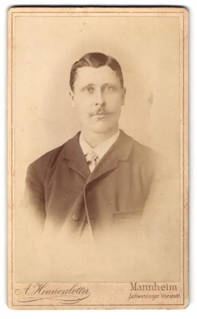Fotografie A. Hennenlotter, Mannheim, Bürgerlicher Herr mit pomadisiertem Haar und dezentem Schnurrbart