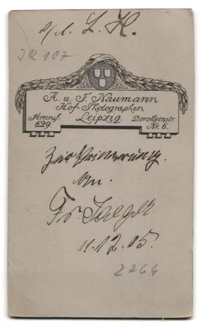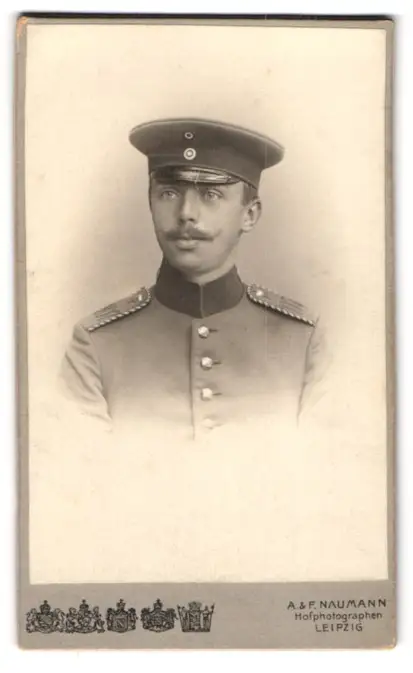 Fotografie A. & F. Naumann, Leipzig, Dorotheenstrasse 6, Einjährig-Freiwilliger mit Schnauzbart, Inf. Rgt. 107
