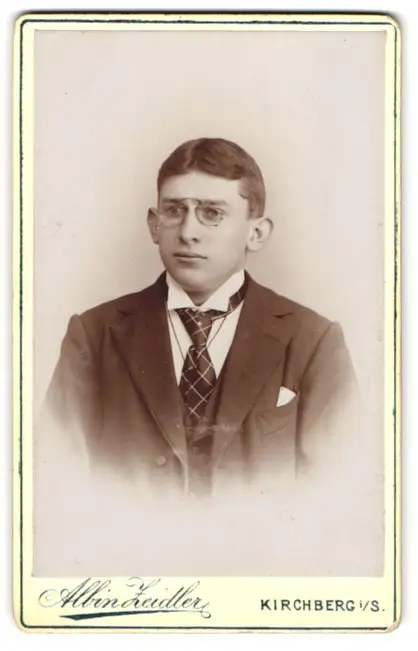 Fotografie Albin Zeidler, Kirchberg i / S., Portrait junger Mann im Anzug mit Krawatte und Zwicker