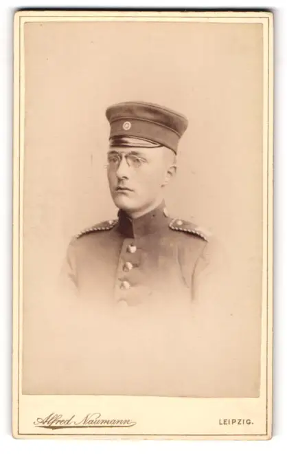Fotografie Alfred Naumann, Leipzig, Dorotheenstrasse, Einjährig-Freiwilliger mit Zwicker in Uniform