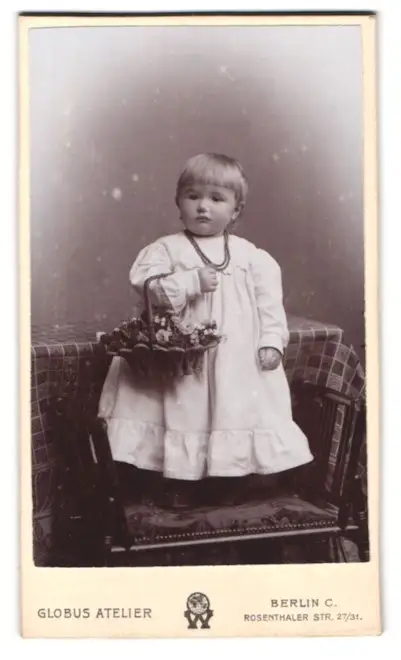 Fotografie Atelier Globus, Berlin-C., Rosenthaler Str. 27-31, Kleines Mädchen im Kleid mit Blumenkorb
