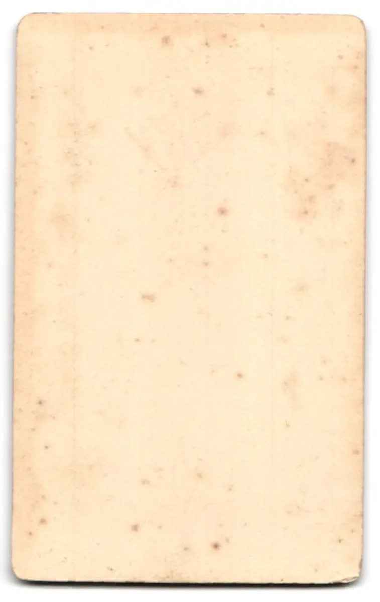 Diese CDV Fotografie zeigt das Porträt einer ernst blickenden Frau. Sie trägt ein fein verziertes Kleid mit einer dekorativen Brosche am Kragen. Ihr Haar ist elegant hochgesteckt. Die sanfte Unschärfe des Hintergrundes hebt die Figur anmutig hervor und verleiht dem Bild eine zeitlose Eleganz., guter Zustand Größe ca. 6,5 x 10,5cm