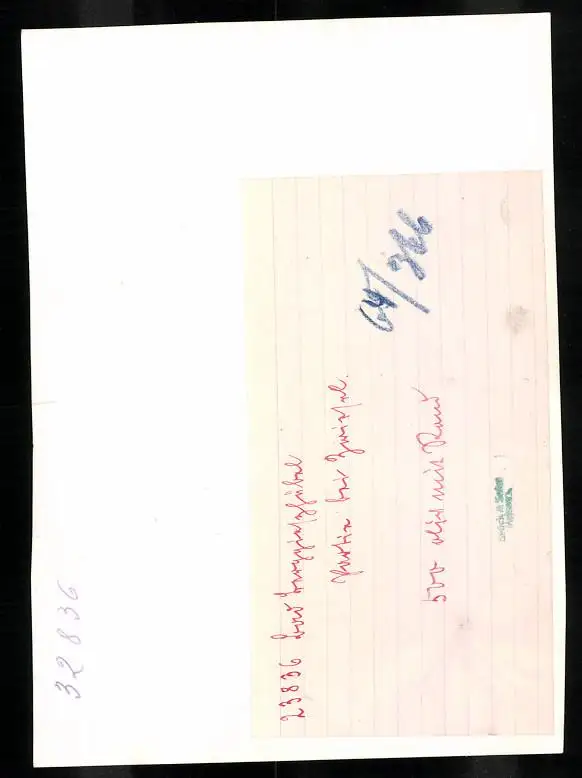 Personenbezogene Daten auf der Rückseite der Karte wurden durch blauen Textmarker unkenntlich gemacht. Die blauen Stellen sind auf die Vorderseite durchgeweicht und wirken sich negativ auf das Postkartenfoto aus