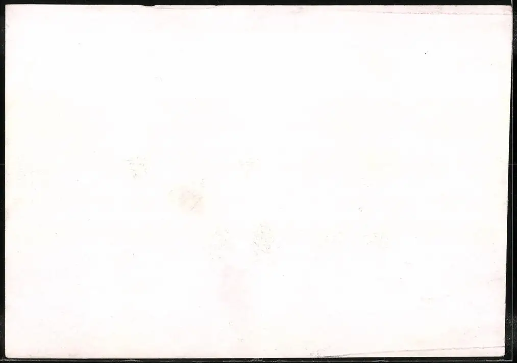 Personenbezogene Daten auf der Rückseite der Karte wurden durch blauen Textmarker unkenntlich gemacht. Die blauen Stellen sind auf die Vorderseite durchgeweicht und wirken sich negativ auf das Postkartenfoto aus