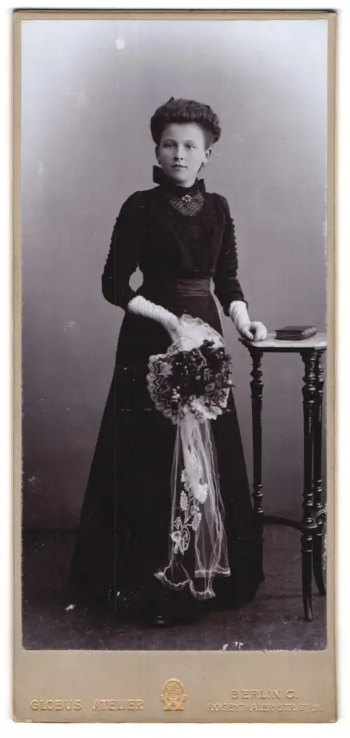 Fotografie Globus Atelier, Berlin, Rosenthaler Str. 27 /31, Portrait hübsche junge Frau im schwarzen Kommunionskleid
