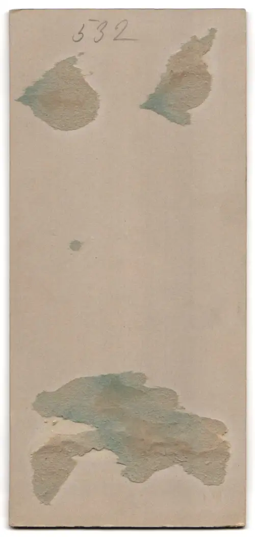 Personenbezogene Daten auf der Rückseite der Karte wurden durch blauen Textmarker unkenntlich gemacht. Die blauen Stellen sind auf die Vorderseite durchgeweicht und wirken sich negativ auf das Postkartenfoto aus