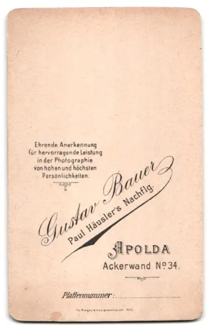 Fotografie Gustav Bauer, Apolda, Ackerwand 34, Junge Dame mit zurückgebundenem Haar