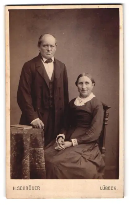 Fotografie H. Schröder, Lübeck, Beckergrube 150, Älteres Paar in hübscher Kleidung