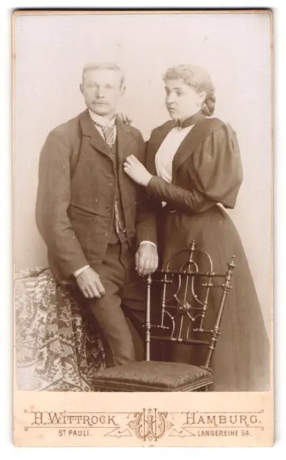 Fotografie H. Wittrock, Hamburg-St. Pauli, Langereihe 54, Portrait junges Paar in modischer Kleidung