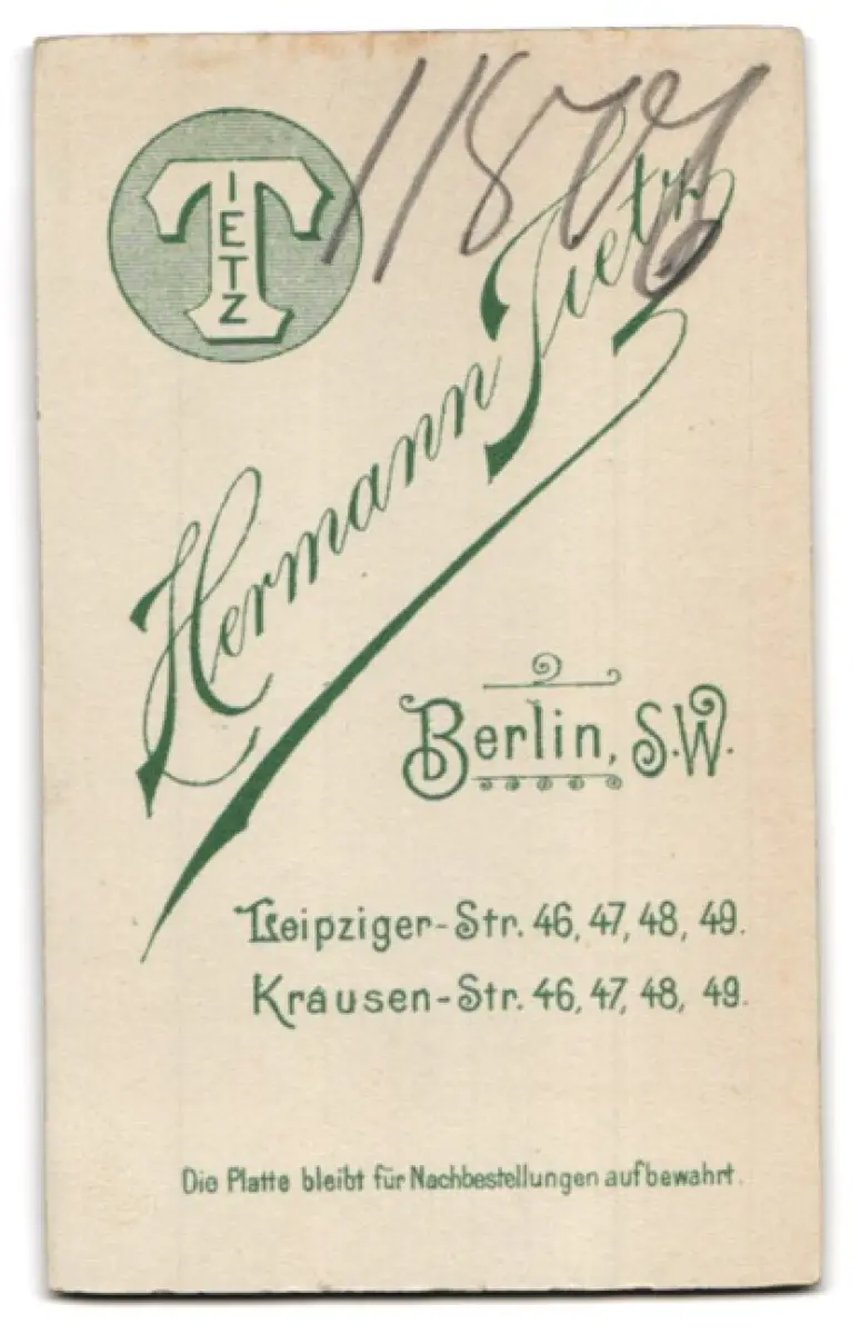 Fotografie Hermann Tietz, Berlin S.W., Leipziger Str. 46, Porträt einer Frau