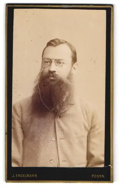 Fotografie J. Engelmann, Posen, Wilhelm-Strasse 8, Bürgerlicher Herr mit langem Vollbart und grossen Geheimratsecken