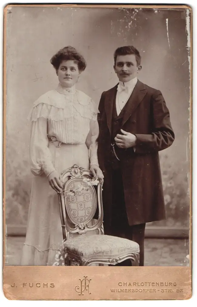 Fotografie J. Fuchs, Charlottenburg, Wilmersdorfer Strasse 57, Junges Paar in eleganter Kleidung