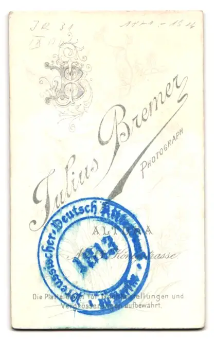 Fotografie Julius Bremer, Hamburg-Altona, Königstr. 89, Soldat Einjährig Freiwilliger in Uniform Inf.-Rgt. 31