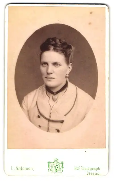 Fotografie L. Salomon, Dessau, Junge Dame mit herzförmigem Medaillon und hochgestecktem Haar
