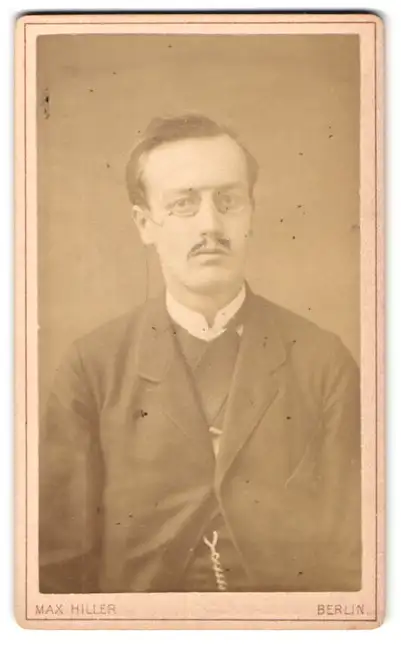 Fotografie Max Hiller, Berlin, Molkenmarkt 6, Junger Mann im Anzug mit einem Zwicker mit Band
