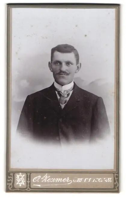 Fotografie O. Zeumer, Crimmitschau, Junger Mann mit Schnurrbart und Krawatte