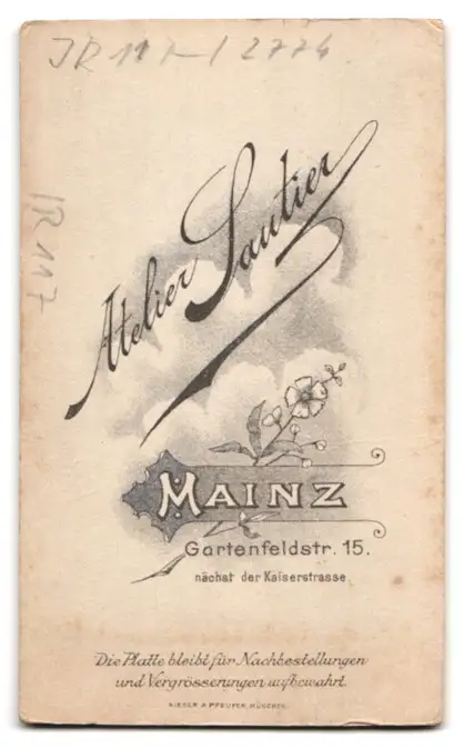 Fotografie Ph. Sautier, Mainz, Gartenfeldstrasse 15, Einjährig-Freiwilliger Uffz. mit Schirmmütze, Inf. Rgt. 117