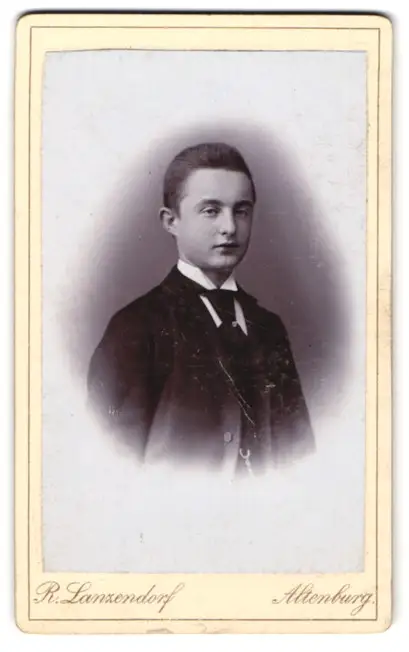 Fotografie R. Lanzendorf, Altenburg, Bernhardt-Str. 5, Junger Mann im Anzug mit Krawatte