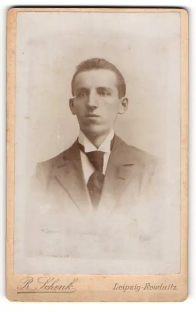 Fotografie R. Schlenk, Leipzig-Reudnitz, Portrait junger Herr im Anzug mit Krawatte