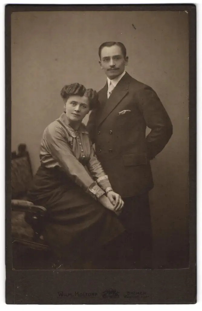 Fotografie Wilh. Holtorp, Bremen, Wulwesstr. 4, Junges Paar in modischer Kleidung