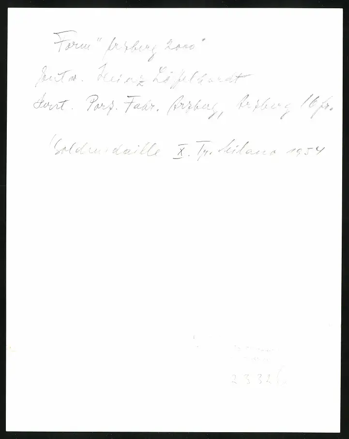 Der Sachfotograf Willi Moegle (1897-1989) aus Schwaben war ein Fotograf par excellence, in seinen Fotografien war er stets auf das Objekt konzentriert welche er durch große Tiefenschärfe und weiche Kontraste arrangierte. Seine Fotografien von Porzellan, Glas und Möbel unter anderem aus Arzberg, Jena und Ulm erfasste er in perfektionierter Bauhaus-Tradition für Firmen wie KPM, Bauknecht, C. H. Pott, die Porzellanfabrik Schönwald und Arzberg sowie viele weitere, guter Zustand Größe ca. 17,0 x 22,0cm