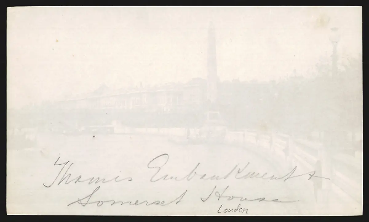 Fotografie unbekannter Fotograf, Ansicht London, Blick entlang der Themese nach dem Obelisk, Cleopotras Needle